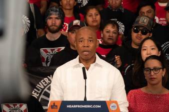 Eric Adams announces a minimum wage hike for delivery workers on June 11th. It would amount to a tiered raise, starting with a hike to $17.96 on July 12th--and $19.96 in April of 2025. Now, major ride-share companies have successfully sued to block the pay boost from taking hold...for now. ( Photo via nyc.gov) DoorDash & GrubHub Get Temp Injunction To Block Wage Hike For Deliveristas Two of the biggest employers of deliveristas–Grub Hub and DoorDash– have gone to court to block a wage hike that was slated... News 10 Jul 2023 | 04:13