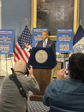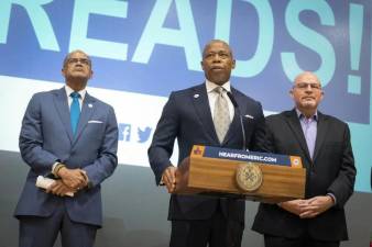 Mayor Eric Adams, back in the blue room at City Hall at his weekly press briefing, but was not flanked by his usual assortment of deputy mayors as he was before his indictment on Sept. 26. He said he has discussed a school cell phone with his new education chancellor, but nothing is imminent. ( Photo: Keith J. Kelly) No School Cell Phone Ban in Near Future as Adams Takes Go Slow Approach Mayor Eric Adams won’t be pushing to the city’s new education Chancellor Melissa Aviles-Ramos to move quickly on any cell... News 22 Oct 2024 | 06:52