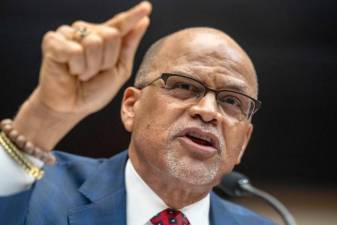 David Banks, seen at a Congressional hearing on education while he was still NYC Education Chancellor, said late last month he was going to retire at year end but now says he is leaving Oct. 16 and blames it on Eric Adams who demanded he leave early. His brother Phil Banks, deputy mayor of public safety said on Oct. 7 he is also resigning from the Adams administration. ( Photo: Associated Press) Two Banks Brothers, Once Part of Adams Inner Circle, Heading to Exits in Ongoing Turmoil Two of the Banks brothers, who were once part of the inner circle of Mayor Eric Adams, have resigned amid at least four federal... News 07 Oct 2024 | 02:17