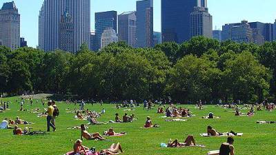 Sunbathers at Central Park, one of the City’s premier cooling stations on the Cool It! map. Emergency Management has updated citywide cooling features to prevent premature heat-related death as temperatures rise. ( Ville Saalo. Wikimedia Commons.) More Than Discomfort: Black New Yorkers Twice as Likely to Die of Heat Stress This Summer Overcrowded benches in City parks, street sellers up-charging on water bottles and long stretches of blocks avoided due to... Home 05 Aug 2024 | 01:51