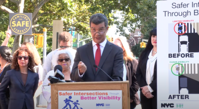 DOT Commissioner Ydanis Rodriguez, center, speaking at a September 3 press conference about intersection “daylighting” improvements. The city is on track to daylight 1,000 NYC intersections by the end of 2024, he said. ( Photo: DOT) DOT: Safety Improvements Added to 36 Manhattan Intersections This Yr. NYC’s Department of Transportation is mounting a massive bid to reduce pedestrian fatalities on the city’s roads, by seeking... News 04 Sep 2024 | 06:26