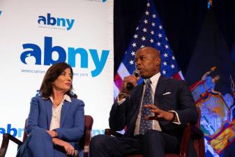 Standing before a giant screen at the Association for a Better New York breakfast recently, Amtrak executive Andy Byford outlines some bold ideas to run trains from the Long Island Rail Road into New Jersey and vice versa. But it will be no simple fix, as all railroads have traditionally ended their runs at Penn Station. ( Photo: Michael Oreskes) Byford Plan: Figure Out How to Get LIRR to Run to New Jersey No one can accuse Andy Byford of thinking small. Byford presented to a breakfast of New York power brokers his game plan for... News 24 Nov 2025 | 05:34