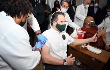 On Wednesday, March 17, 2021 Governor Andrew M. Cuomo received the Johnson and Johnson coronavirus vaccine from Dr. Jacqueline Delmont at a pop up vaccination site in Harlem. Photo: Kevin P. Coughlin / Office of Governor Andrew M. Cuomo Taking Shots — At Each Other The Centers for Disease Control said Friday that grade schoolers can safely sit closer together in class than previously... News 20 Mar 2021 | 02:24