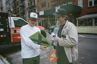 Songwriter Ed Sheeran (left) being interviewed by co-host Jack Coyne, is among the celebrities who have made their way to Astor Place to appear on “Trackstar*,’ a music trivia contest that has nearly 200,000 followers on Tik Tok. Photo: Courtesy Public Opinion Inc. Three Co-hosts of Fast Growing Tik Tok Music Trivia Show Find Their Groove in Astor Place “Name the artist win $.” That’s the sign that the three co-hosts of a music trivia show called “Trackstar*” – two brothers,... City Arts 28 Dec 2023 | 05:40