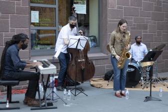 Musicians (left to right) Elio Villafranca (piano), Peter Slavov (acoustic bass), Roxy Coss (tenor sax) and Francisco Mela (drums) at Friday’s pop-up event in Chelsea. Photo: Azita Panahpour A Moment of Joy in Chelsea On Friday, September 25, #NYCNext, a group of committed New Yorkers from all sectors, hosted its first live pop-up event... News 26 Sep 2020 | 10:31