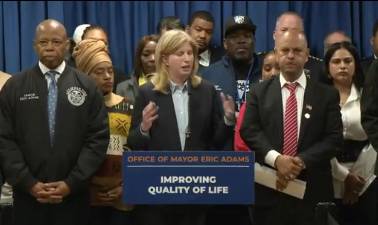 A grim-faced Governor Kathy Hochul (at mic), flanked by NYPD Commissioner Jessica Tisch (left) and MTA Chairman and CEO Janno Leiber (second from right), demanding that Homeland Security disburse the $34 million earmarked for counterterrorism in the MTA. Of the 21 applicants for the funds, the MTA was the only one that the feds held back. ( Photo: MTA) Hochul Demands Trump Admin Restore $34 Million in Anti-Terror Funds for the MTA Tense and unsmiling, Governor Kathy Hochul spoke at a 25-minute MTA press conference on Oct. 9, calling on Kristi Noem’s... News 12 Oct 2025 | 11:18