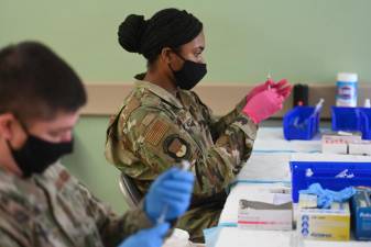 Medical members of the National Guard prepare Pfizer COVID-19 vaccines on February 24, 2021 at Medgar Evers College in Brooklyn, one of the New York State-FEMA mass vaccination sites. Photo: Kevin P. Coughlin / Office of Governor Andrew M. Cuomo Vaccines and Allergies As of this writing, New York state has administered more than three million first doses of the COVID-19 vaccine, which means... News 03 Mar 2021 | 09:26