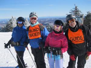 Author Ed Plumacher (second from left) at Pico Mountain in Vermont with guide Frank Kelly, who volunteers with Vermont Adaptive. The other two skiers are also volunteers, who ski in front of them and off to one side to help them avoid close contact with sighted skiers. From the annual event sponsored by United States Association of Blind Athletes. Sports and Exercise Tips for People Who Are Blind or Visually Impaired People who are blind or visually impaired can live a sporting life and enjoy a full range of activities. Whether it’s bowling... News 05 May 2021 | 10:47