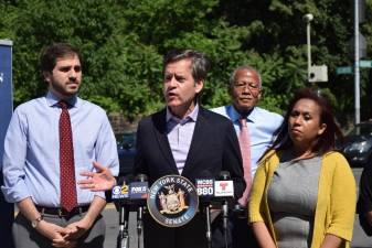 State Sen. Brad Hoylman, flanked by Sens. Andrew Gounardes and Robert Jackson and District 10 candidate Johanna Garcia. Photo: Emily Higginbotham Cracking Down on Drag Racing A trio of state lawmakers are pushing a pair of bills to crack down on drag racing and the noisy exhaust pipes of souped-up... News 28 May 2021 | 02:21