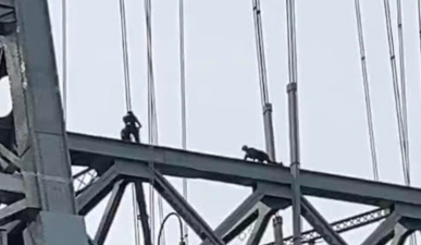 Men up on the Williamsburg Bridge on the morning of Friday, October 27. They may have been NYPD officers attempting to get a possible bridge-jumper off the cables. Mayor Eric Adams confirmed that a man had been taken into custody around 10 a.m. ( Photo via Citizen App ) Williamsburg Bridge Shut Down for 7 Hours After Man Climbs Cables A man who climbed up the cables of the Williamsburg Bridge and possibly considered jumping shut down cross-borough rail,... Home 01 Nov 2023 | 11:33