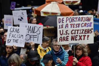 Veteran photojournalist Dean Moses (center) just as he is being grabbed by masked ICE agents and forced from a public elevator at 26 Federal Plaza, where he was covering immigration hearings. ( Photo: Suzanne Keith via social media) ICE Rousts Journalists Doing Their Jobs at Manhattan Federal Court House Our news colleague Dean Moses had a run-in with the law the other day. Or, more precisely, he had a run-in with lawless federal... Voices 02 Oct 2025 | 09:12