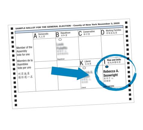 Bottoms up - The court battles are over and Democrat Rebecca Seawright, after a tumultuous pre-election process, is on the November ballot on the Rise and Unite Party. After the appellate court found that her primary challenger for the State Assembly did not meet the residency requirements to qualify as a candidate for the November election ballot, Seawright’s name appears on the last line of the ballot. “That’s okay,” said one of her supporters, “I’m voting for Rebecca [Seawright] starting at the bottom of the ballot and working my way up to the top to vote for Biden and Harris.” While there’s no candidate on the Democrat line in the race, Seawright’s the Democrat incumbent and Democrat electeds who are supporting her include Congress Member Carolyn Maloney, State Senator Liz Krueger and Assembly Members Dan Quart, Ben Kallos and Keith Powers. Once a Democrat always a Democrat no matter what line you take.