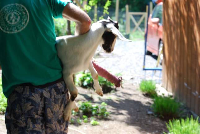 Vet visits, you’ll notice, are not listed above. They would make our goat operation very much a losing one. Goats can be very self-sufficient — feeding themselves three of four seasons, bearing their young while you’re not looking — although we have also had goats get sick and die very quickly. We let things take their course. Unless, that is, the goat in question is Charlie.