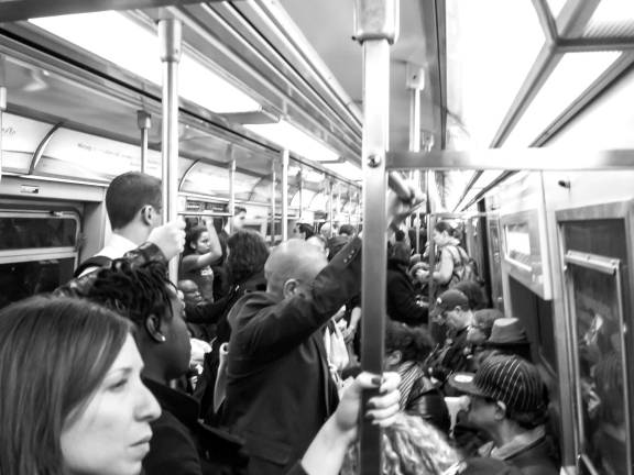 This is just one of many rules of train etiquette — an entire guidebook could be written for appropriate train behavior. Other important rules include A) You may scoff when someone holds the train door, but you may also do this yourself. B) No food shall be eaten on the train, aside from an occasional, not-too-crunchy granola bar. C) You will be forced to assume elaborate, human-pretzel like positions in order to fit onto busy trains – we all do it, just consider it urban yoga.