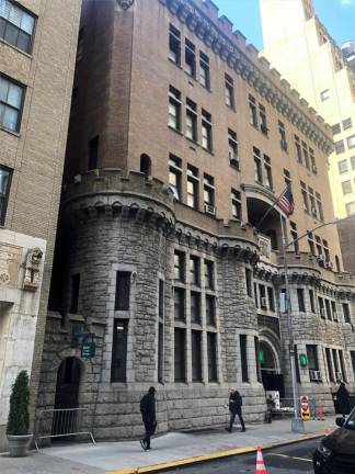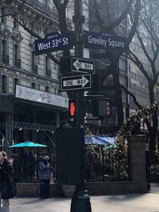 The boys in the NYPD did actually sing “Galway Bay” under the arches in Washington Square Park. And it was actor Matt Dillon who played the NYPD officer hauling MacGowan’s character into the “drunk tank,” which was actually the lockup in the old 23rd Pct at 134-138 W. 30th St. Other scenes showed MacColl walking forlornly in Greeley Square and the couple arguing outside the Times Square Hotel, along with shots of that New York City holiday staple, the Rockefeller Center Christmas tree.