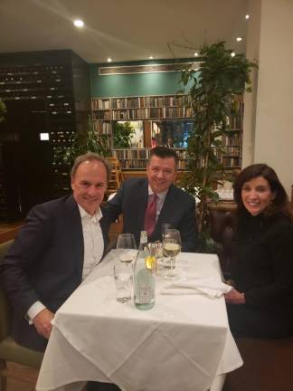 Governor redux – Days before the votes were counted, and confirming that Gov. Kathy Hochul would be NY’s first-elected female governor, she and her husband William wined and dined at Mirso Lekic’s Tudor City Steakhouse. The NY Post’s Cindy Adams reprised the dinner in a recent column, titling the item “Gov chows down,” and noted that, in addition to “Champagne plus Sancerre, and beet salad and branzino,” the Hochuls were good tippers. And they – the Hochuls and Mirso Lekic – were all smiles in anticipation of the victory.