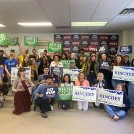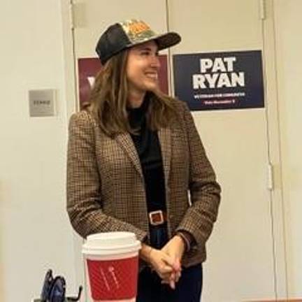 The Pat Ryan makeshift campaign office is large and surprisingly tidy. Senior campaign operatives, who have worked on other prominent campaigns, including the Suozzi special election, are on deck to coach volunteers, who took a bus from Manhattan to help Pat Ryan and other democratic candidates. No sight of the Congressman this morning, but Michelle Hinchey, the state senator for the area, who is also running for reelection, is on site to get our group revved up. Wearing a camo hunter cap with her name on it, a tweed gentleman farmer tailored jacket, and a pair of hipster jeans, she exhorts our group to hit the ground.