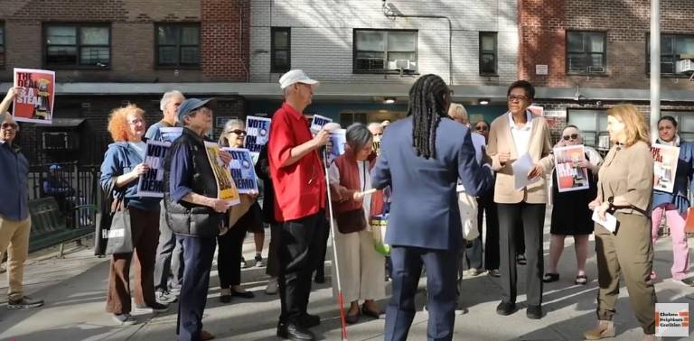 To kick off the hearing series, the evening began, as such evenings often do, with a press conference from advocates opposing the project. Under the still-long April light, under the tender cherry blossoms (there are 370 mature trees on campus, all slated for the matchstick factory), tenant leaders, activists, and Chelsea stalwarts assembled outside the Fulton Houses, standing shoulder to shoulder like citizens called to a common alarm.Marquis Jenkins, a tenant advocate, moderated the event and reminded everyone why it is so important to fight this plan: a land grab, with much less tenant protection. Dr. Fields, a doctor with a family practice in Harlem, lent the moment its medical ballast. She brought to light the health impact of this demo project, the harm to young children, the alarming air quality issue, the risks to the displaced elderly. Jackie Lara, Renee Keitt and Celines Miranda, the tenant leaders who have spent years defending this corner of New York added their voices, too. CBS News caught the scene, as well as the tension that mounted in the hearing room. Inside, the official hearing commenced. NYCHA and HPD presided. They offered a presentation that, one imagines, some planner in a distant office thought would suffice: a thousand-page Draft Environmental Impact Statement (DEIS) compressed into five minutes of monotonous explainer, technical lingo, punctuated by floor plans displayed for so fleeting a moment that even trained architects might have blinked and missed them. There were no renderings, no images of what might rise in the place of what would fall, and no plain language to help tenant understand what is about to happen to them. The room, packed with over a hundred residents, ground into a steady procession of opposition. One by one, tenants and neighbors spoke out. Renee Keitt, President of the tenant association reminded in a moving speech that the condition of the buildings was the result of decades of disinvestment and was not the fault of the tenants. Pamela Wolff, a long-time resident of Chelsea, rose to ask with her unmistakably soft yet firm voice: “where are our elected officials”, and wondered why they ignore the voices of their constituents.Roberta Gelb, a former president of the local democratic club and a housing advocate who fought Barney’s plan to raze rental buildings some 30 odd years ago let her perennial rage rise to ebullition. “This plan smells. A $1.9 Billion, with a “B”, no-bid contract? How is that even legal?”. Tenants spoke of their fears for displacement, their attachment to their homes.Environmental impacts took center stage. Pollutants, lead, mercury, barium all in excess of acceptable norms, asbestos, noise that can’t be abated, the 16-year construction timeframe. Lenny Rosado, a Fulton tenant rep, asked with a mix of sarcasm and disbelief, “This project will end in 2041? Please tell me this is a typo!!!”I spoke too, and reminded the audience that the very health hazard invoked to raze these buildings, mold, the villain of every NYCHA press release, mold, the phantom menace blamed for all ills is MIA, found only in minute traces in the cellar of one building. The following evening at Hudson Guild, the crowd swelled even larger. Tenants, parents from PS 33, the local elementary school, neighbors from the residential co-op Penn South — many of whom had learned of the plan only the day before — crowded into the second-floor community room. The sense of abuse hung thick. The emotion was very palpable. There, tenants spoke of their heartache, “I feel like I’m going to have a heart attack” said one woman. Of their anguish, and their sense of betrayal. One woman cried and waled and screamed. “How can you do that to us?” Tenants bravely overcame their fear of public speaking. One of them froze half way through and a participant kindly stood and helped her finish reading her testimony. Each three-minute comment was greeted with applause, and cries and whispers of anger. Joe Restuccia, the well-respected and charismatic housing leader of the Community Board 4 spoke of the misinformation surrounding this plan and reminded everyone that it is not a done deal. Again, that evening, not one elected official deigned attending the hearing. Speakers denounced the project as a land grab, a civic dispossession dressed up in the sterile language of development. Parents worried about the impact on their children’s already crowded classrooms, and unhealthy noise levels. Neighbors wondered aloud how the sewer system, strained even now, would survive a sudden and massive influx of apartments.NYCHA’s leadership team made a token appearance at the first hearing but skipped the second entirely. Related’s leadership didn’t bother to show up at all.